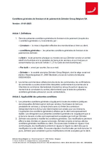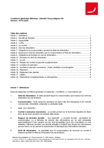 Conditions générales Webshop - Zehnder Group Belgium SA